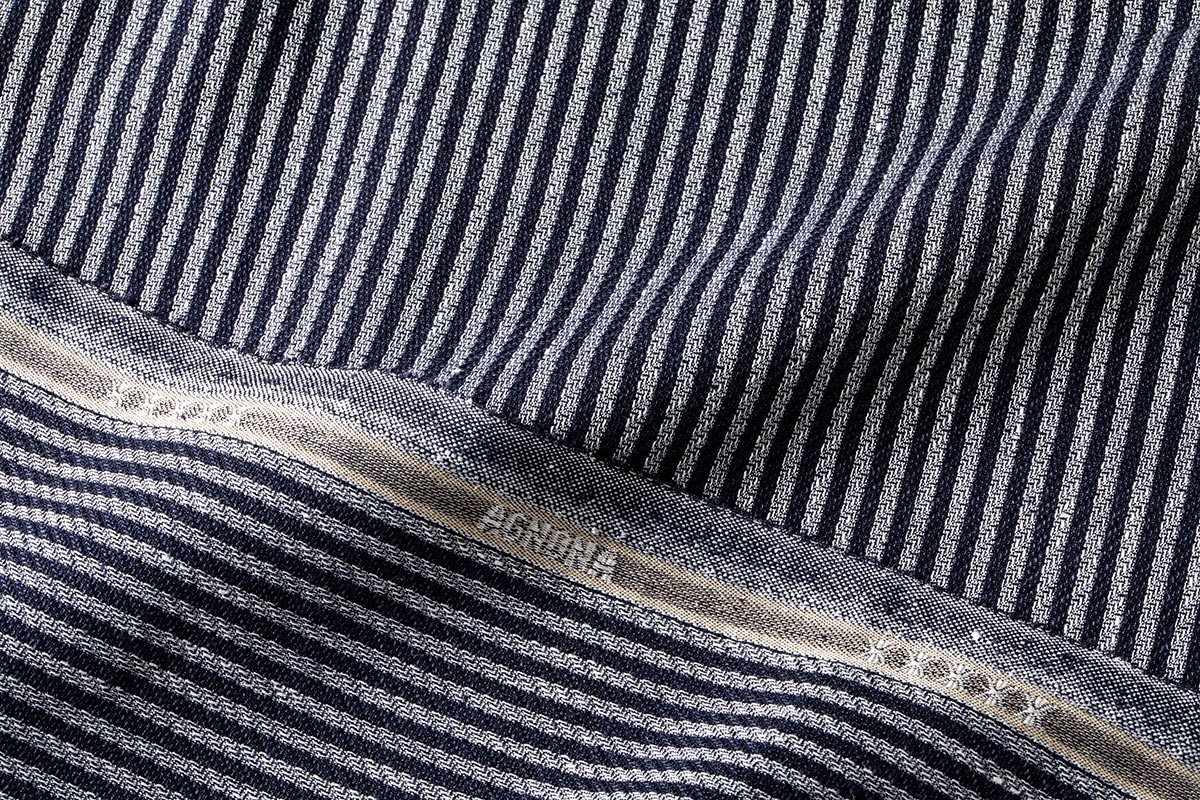 このブランドならではのネップを効かせた生地感と凹凸感に加え、ホワイトとネイビーを絶妙に掛け合わせ爽やか且つ色気の漂う一着です。