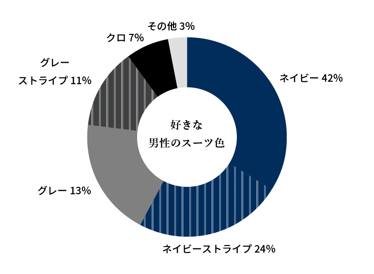 ネイビーの無地が42%、ストライプ柄を含めると60%超えという結果に。
